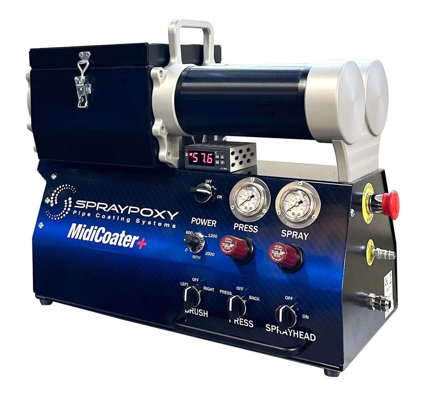Notre machine SprayPoxy MidiCoater projette la résine époxy en couches uniformes sur toute la surface interne. Elle s'adapte à tous les diamètres, coudes et raccordements. La projection robotisée garantit une épaisseur constante et une adhérence optimale.